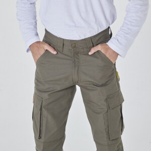Una bermuda cómoda y resistente por su diseño y confección en gabardina 100 % Algodón. Ideal para uso diario. Cuenta con bolsillos traseros prácticos y seguros con tapa y velcro.